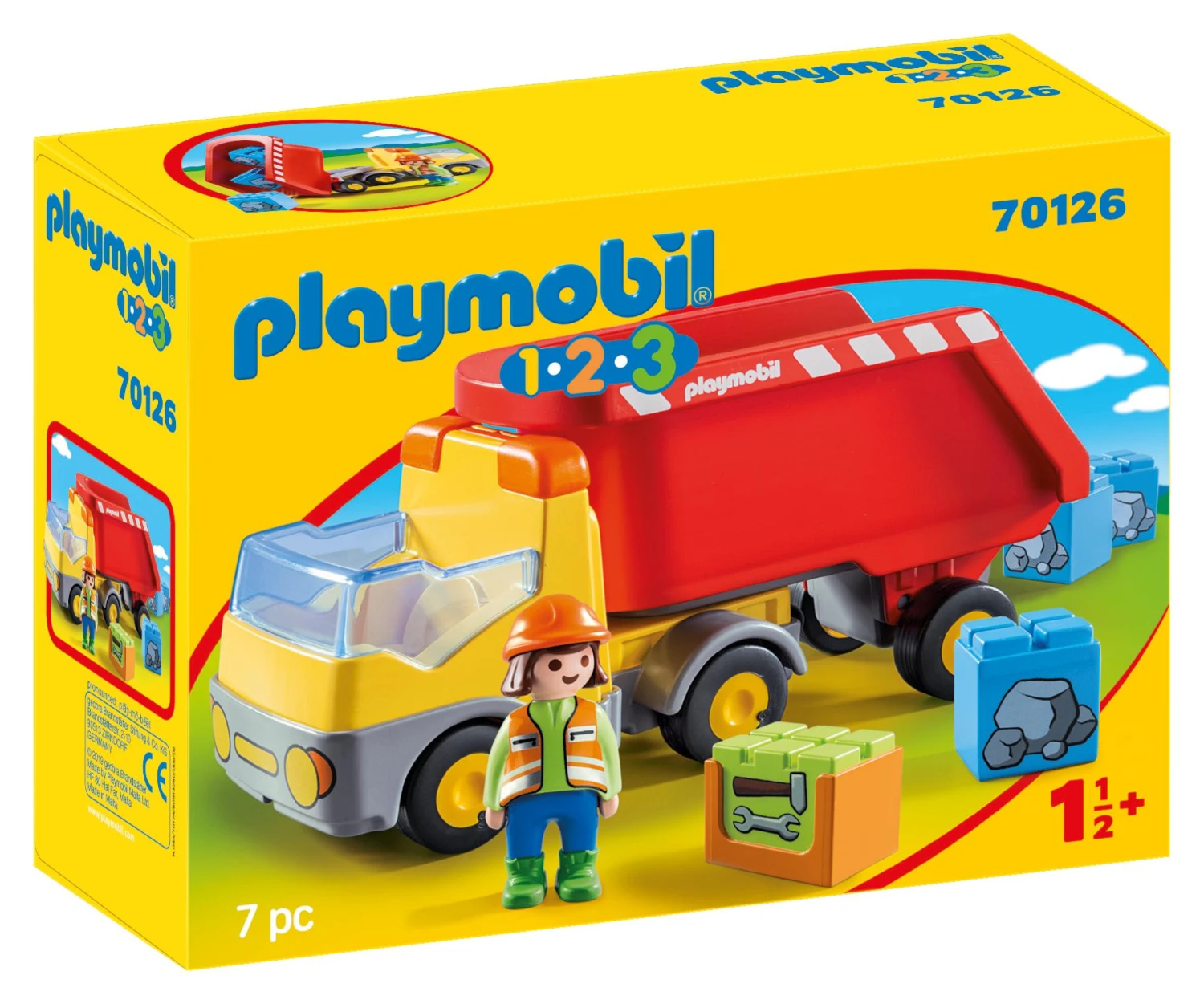 Die emsige Bauarbeiterin ist heute wieder im Einsatz. Es gibt viele Steine die abtransportiert werden müssen. Natürlich ist das kein Problem für die fleißige Fachfrau. Geschwind lädt sie die Steine auf die Ladefläche ihres Kipplasters und fährt los. Lebensnah: Die Ladefläche des Laster lässt sich kippen. Die ergonomischen, runden Spielsets von PLAYMOBIL®-1.2.3 eignen sich ideal für Kinder ab 1 1/2 Jahren, regen die Fantasie an und fördern Kreativität und Feinmotorik. Spielerisch die Welt begreifen mit PLAYMOBIL®-1.2.3.