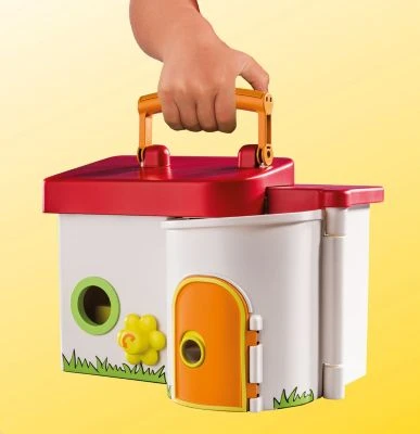 Im Kindergarten ist immer etwas los: mit den kleinen Freunden Spielen, Toben, Schaukeln, Rutschen, Karussell fahren und vieles mehr. Spielt die schönsten Geschichten aus dem Kindergarten nach.Der komplette Spielinhalt kann im Koffer verstaut werden. Perfekt für unterwegs!Maße geschlossen: 24 x 17 x 21 cm (LxTxH).Details:Der gesamte Inhalt des Spielsets kann im Koffer verstaut werden.Zum Transportieren wird der Koffer verriegelt, indem beide Seitenteile eingeklappt werden und der Blumenknauf im Uhrzeigersinn nach rechts gedreht wird. Auch muss die Eingangstür verschlossen werden, in dem der gelbe Riegel der Eingangstür nach unten geschoben wird.Zum Tragen des Koffers kann der Griff am Dach nach oben geklappt werden.Zum Spielen öffnet man den Koffer, indem der Blumenknauf nach links gedreht und der gelbe Riegel der Eingangstür nach oben geschoben wird. Nun können beide Seitenteile aufgeklappt werden.Am Haken unter dem Dach wird die Schaukel aufgehängt. In der Schaukel ist Platz für eine 1.2.3-Figur (keine Fixierung).Die 2×2-Bausteine können gestapelt und über das 1.2.3-Rastersystem miteinander verbunden werden.Die Kindergartentür wird geöffnet, indem der gelbe Riegel am Türloch nach oben geschoben wird.Auf dem Dach des Eingangs befindet sich ein Karussell. Es bietet Platz für eine 1.2.3-Figur. Das Karussell kann auch entnommen und als freistehendes Karussell verwendet werden.