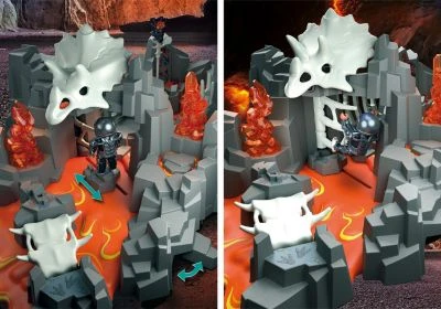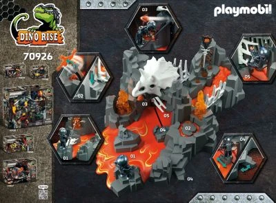 In dem spannenden Kampf um die wertvollen Energiesteine geht es für das Team Dino Rise in eine neue Runde. Mit dem Spieleset PLAYMOBIL® Wächter der Lavaquelle (70926) muss sich Ian vom Team Dino Rise neuen Herausforderungen und spannenden Abenteuern stellen. Um zu dem legendären Wächter der Lavaquelle zu gelangen, muss er so manche Hindernisse überwinden und sich in der unheimlichen Felsenkulisse voran arbeiten. Wird es Ian gelingen die Gefahren zu erkennen? Was ist das? Der Dinoschädel neigt sich nach hinten und ein Flammenprojektil fliegt durch die Luft! Was führt der Energiewächter im Schilde und wird Ian Hilfe von seinen Team Kolleg*innen bekommen? In dem Set enthalten sind die Spielefiguren Ian vom Team Dino Rise, ein Wächter und ein Dornteufel mit kompletten Ausrüstungen. Außerdem eine Lavaquelle mit mechanischen Fallen, ein Schutzschild und viele weitere Zubehörteile für spannende Geschichten und aufregende Abenteuer. Die auslegbare Silikonlava ermöglicht eine ganz individuelle Gestaltung der Quelle.