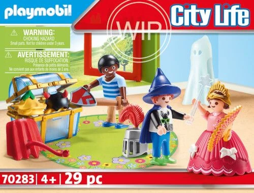 Die Kinderfiguren können mit den enthaltenen Kostümen incl. Zubehörteilen verkleidet werden.