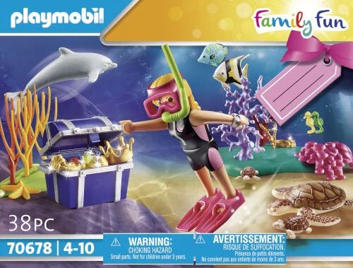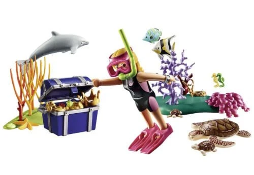 Im wunderschönen Riff findet die Schatztaucherin eine geheimnisvolle Schatztruhe.