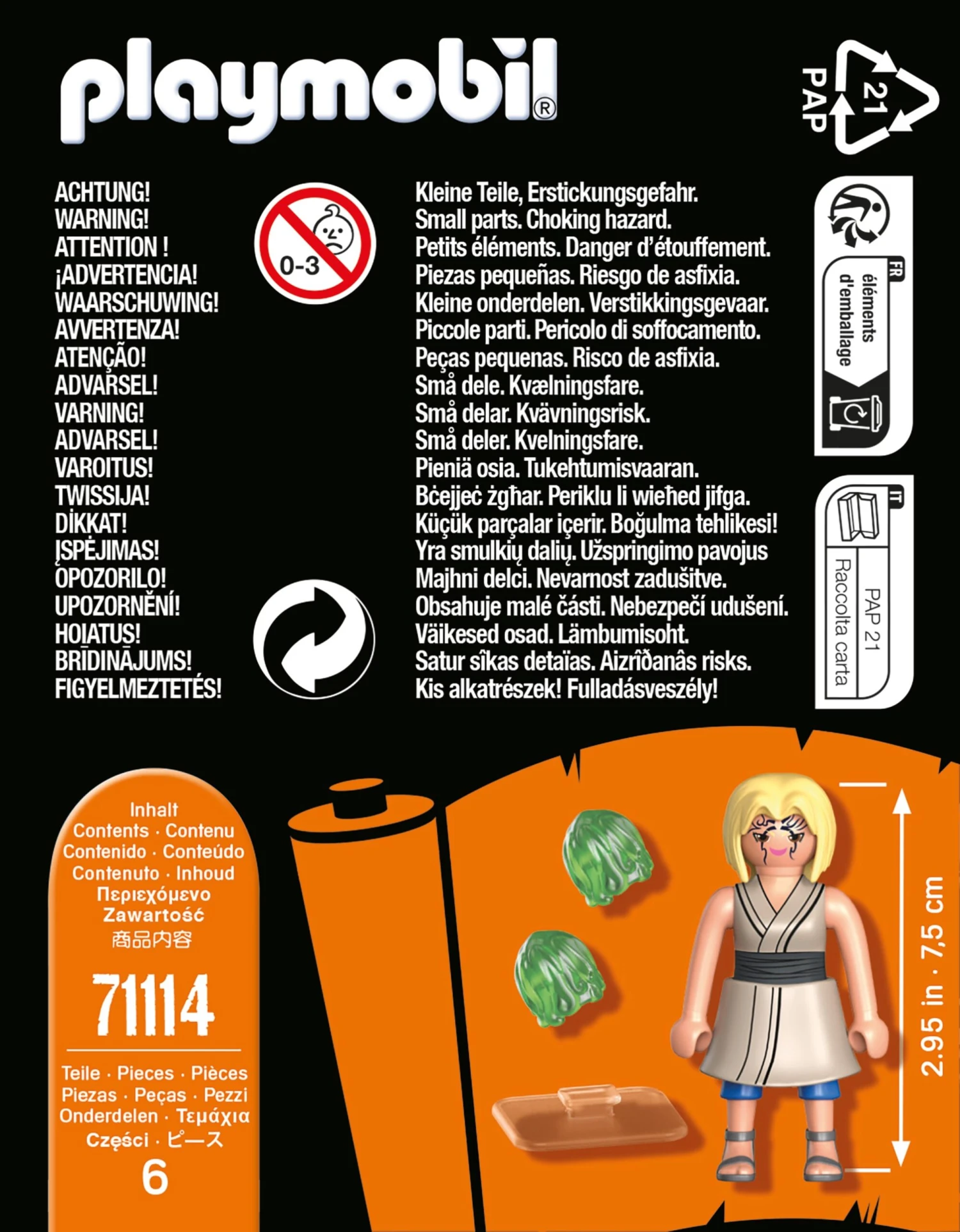 Als erste weibliche Hokage in der Geschichte des Dorfes Konoha ist Tsunade eine der einflussreichen und legendären Sannin (Drei Ninja). Als eine der Begründerinnen des medizinischen Ninja-Bereichs hegt Tsunade eine große Liebe für das Dorf und seine Bewohner. NARUTO SHIPPUDEN meets PLAYMOBIL. 24 neue Figuren für alle Anime-Begeisterten! Pünktlich zum 20-jährigen Jubiläum der Kultserie erscheint der sensationelle Anime-Erfolg jetzt im PLAYMOBIL-Format! Figuren: 1 Tsunade Tiere: – Zubehör: 2 Chackrabälle