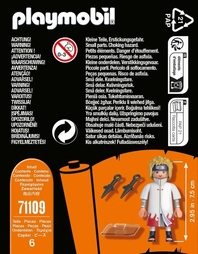 Begleite den sympathischen Naruto Uzumaki auf seiner abenteuerlichen Reise Hokage zu werden. Das PLAYMOBIL-Set enthält NARUTO SHIPPUDEN Charakter Naruto Uzumaki im Sennin-Modus mit gelbem Oberteil, schwarzer Hose und gelben Sandalen sowie mit Stab und Kunai.