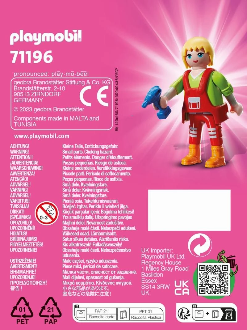 Figuren: 1 Handwerkerin Zubehör: 1 Bohrmaschine, 1 Werkzeugkasten, 1 Werkzeug-Set