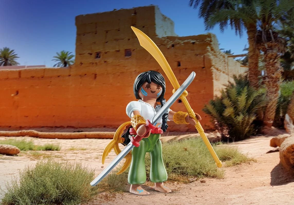 Figuren: 1 Kämpferin Zubehör: 1 Langsäbel, 1 Doppelschwert, 1 Wurfbogen, 2 Armbänder