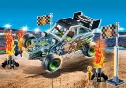 Das Spielset besteht aus einer PLAYMOBIL-Fahrerin, einem Crashcar, einem Crashtest-Dummy, brennenden Tonnen und vielen weiteren actiongeladenen Extras. Das Rennauto kann durch wechseln der Stoßstange und der Motorhaube in ein Crashcar mit brennendem Motorblock und Rampe umgebaut werden.
